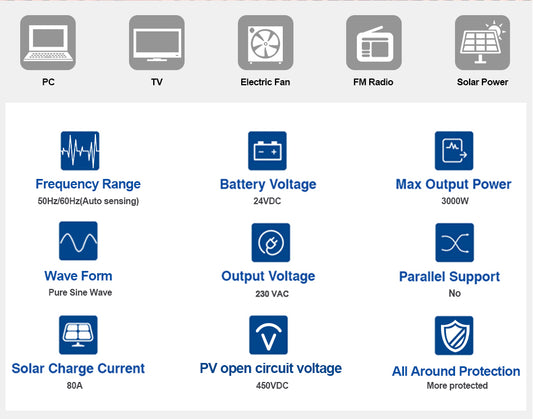 EASUN POWER 3.2K Solar Inverter 24V 220V Off Grid Inverter 60A